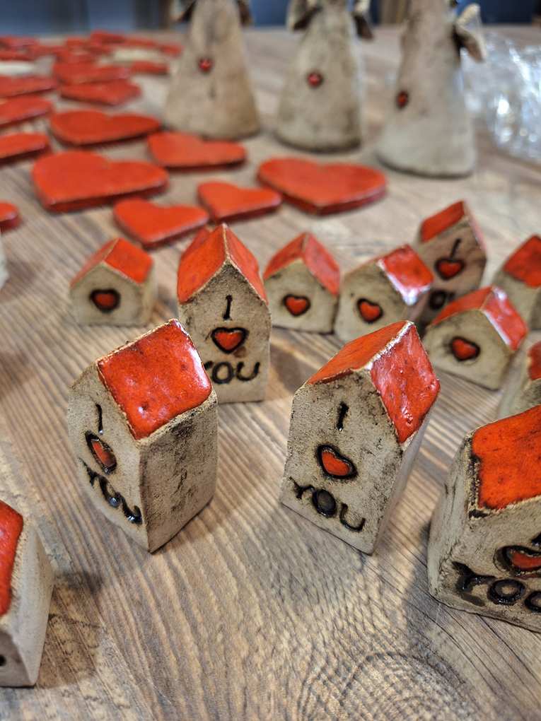 Na zakończenie spotkania uczestnicy otrzymali w prezencie trzy małe domki z gliny – charakterystyczne, znane już niemal wszystkim, którzy odwiedzili Przystań. Nierówne, lekko chropowate, z wyraźnym śladem dłoni, która je ulepiła. Ich forma była prosta,
