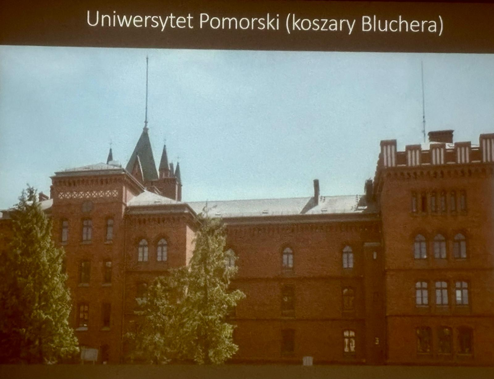 Kolejne zabytki, które były zaprezentowane podczas wykładu, to kościół św. Jacka, kaplica św. Jerzego, siedziba starostwa powiatowego, synagoga (nieistniejąca), szpital psychiatryczny, Hotel Mund’s za pomnikiem Blüchera (nieistniejące), gmach Pomorskiej Biblioteki Pedagogicznej w Słupsku z 1933 roku czy okazały gmach słupskiego ratusza.