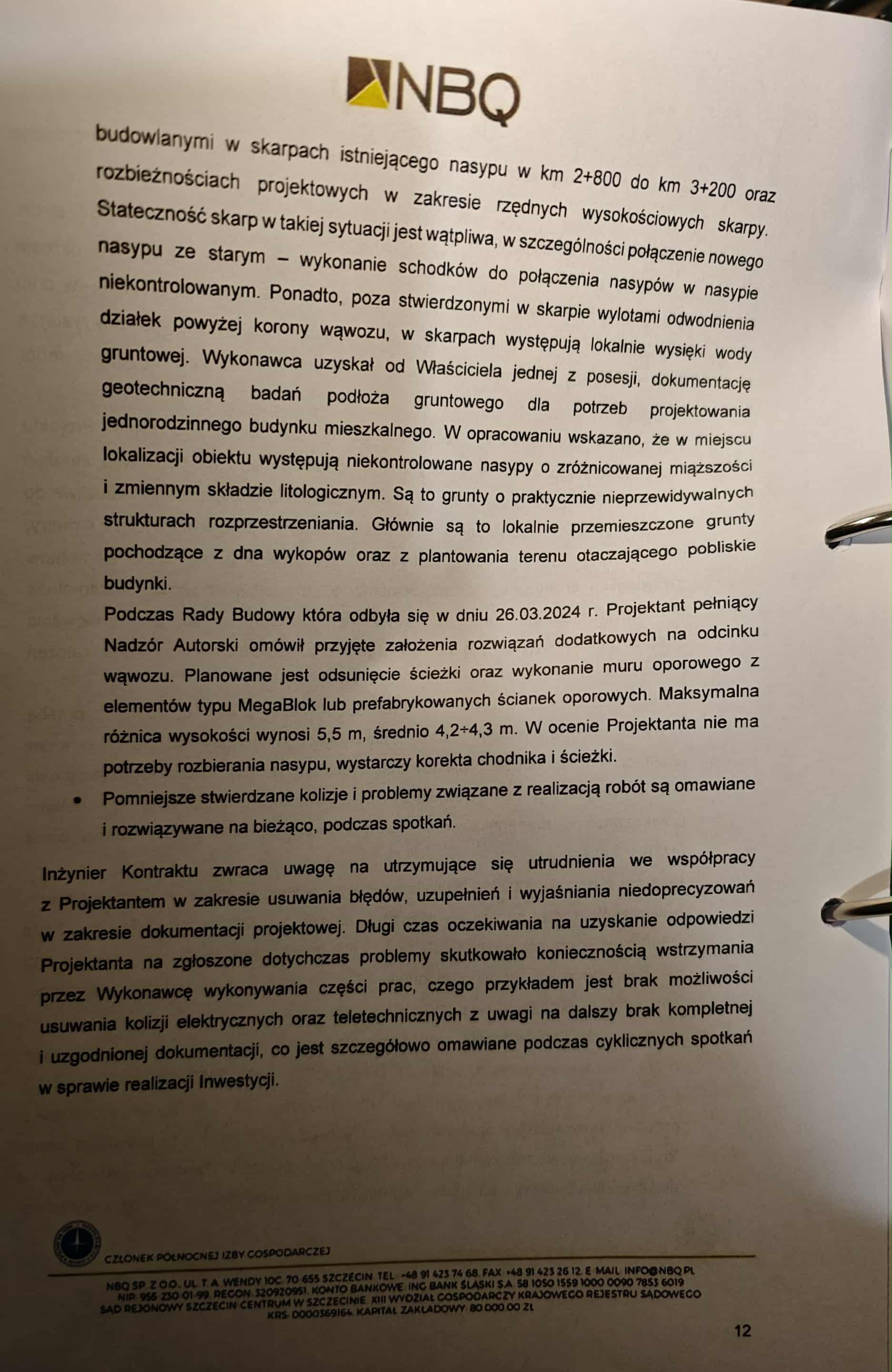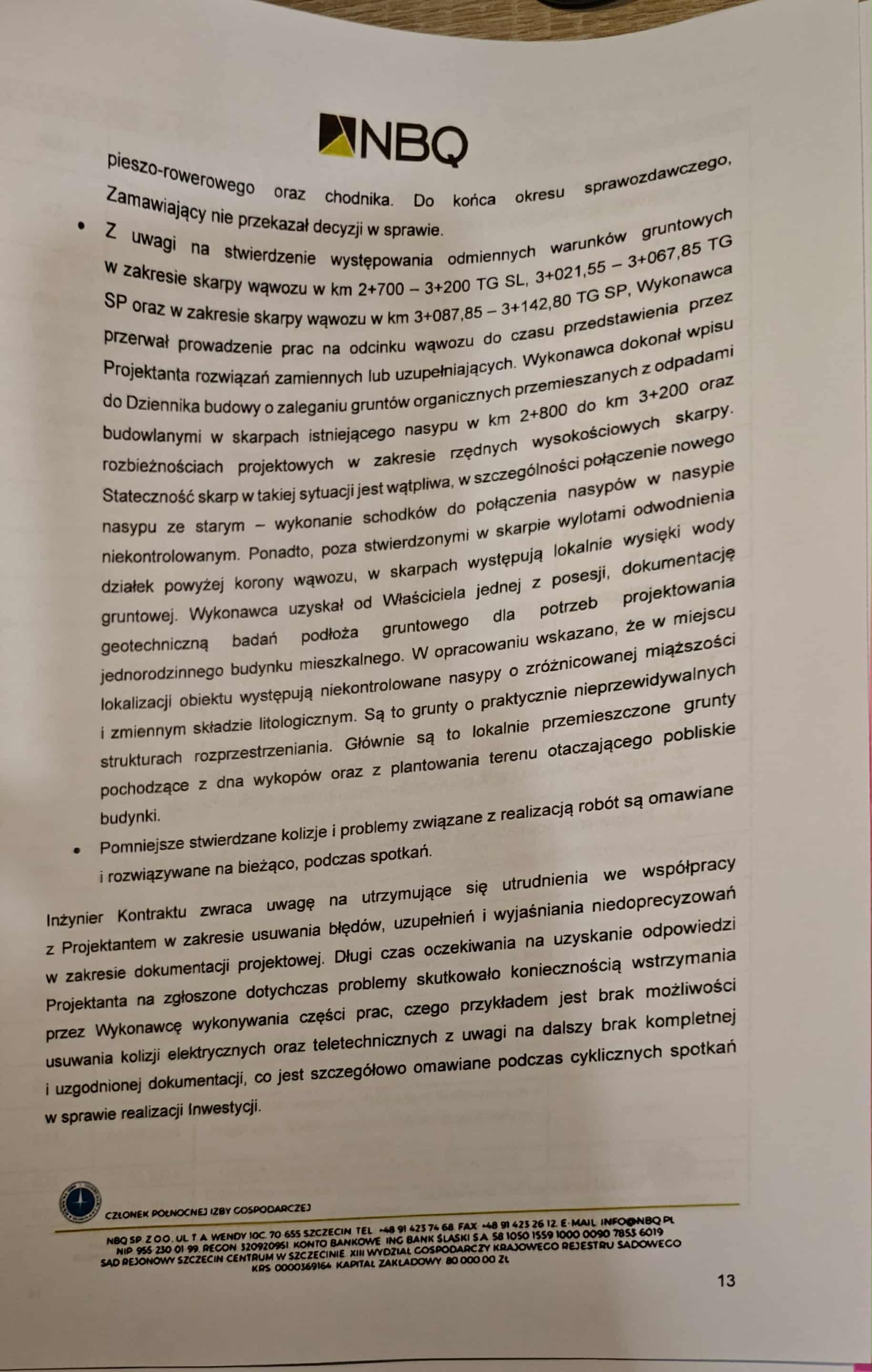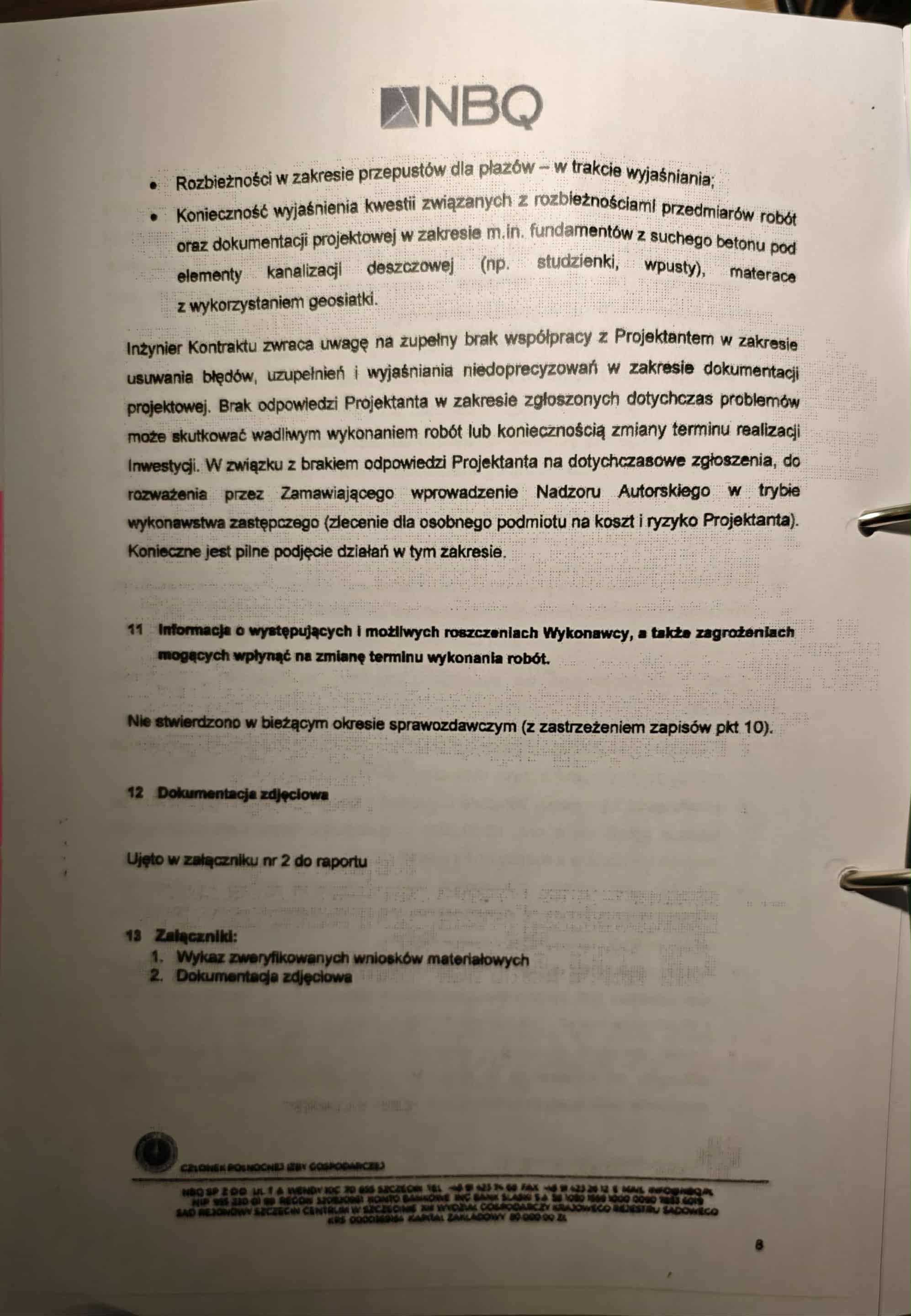 Firma NBQ, pełniąca funkcję inżyniera kontraktu, w swoich raportach nie zostawia złudzeń: opóźnienia, błędy projektowe, rozbieżności w dokumentacji, brak współpracy