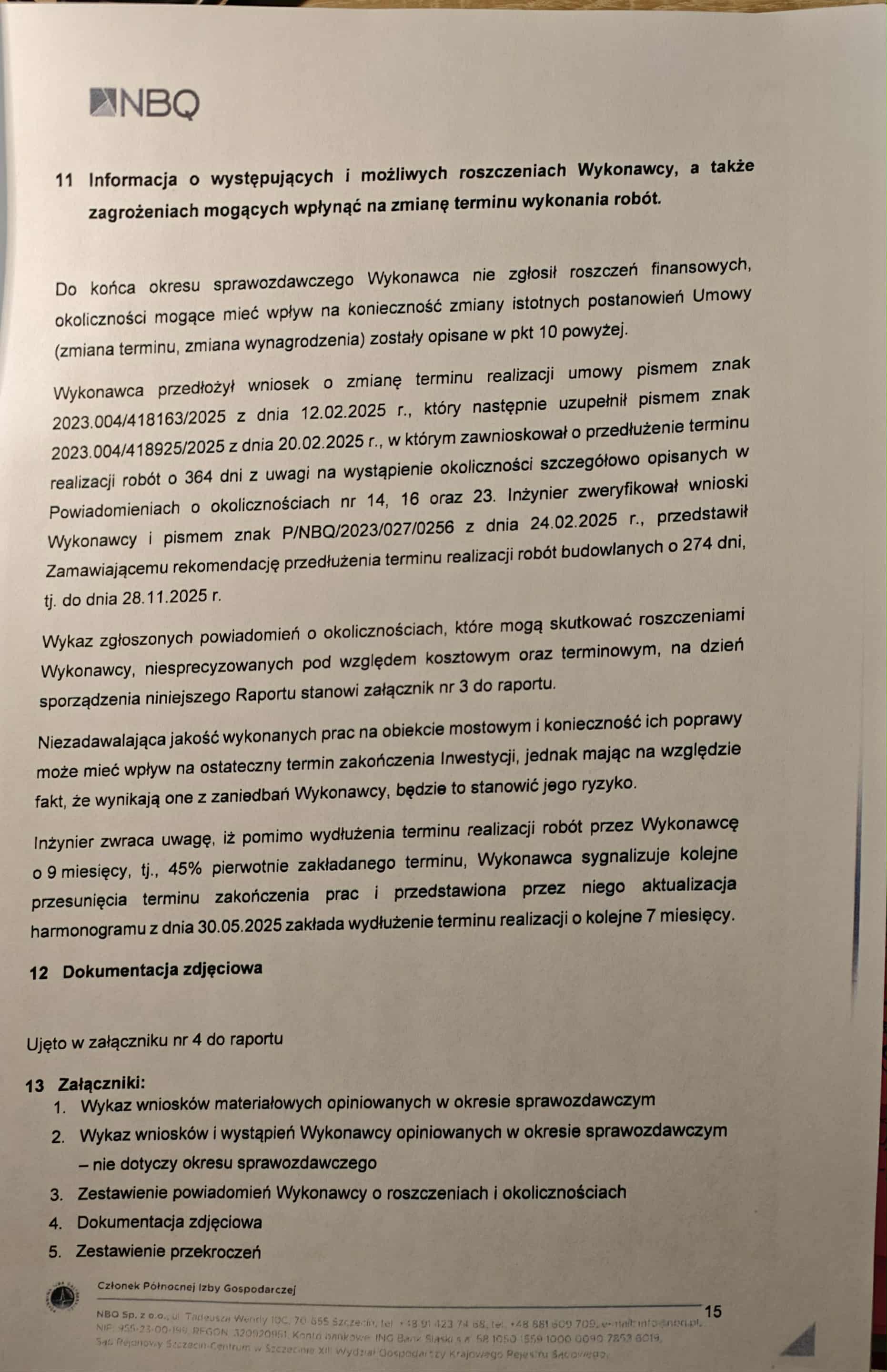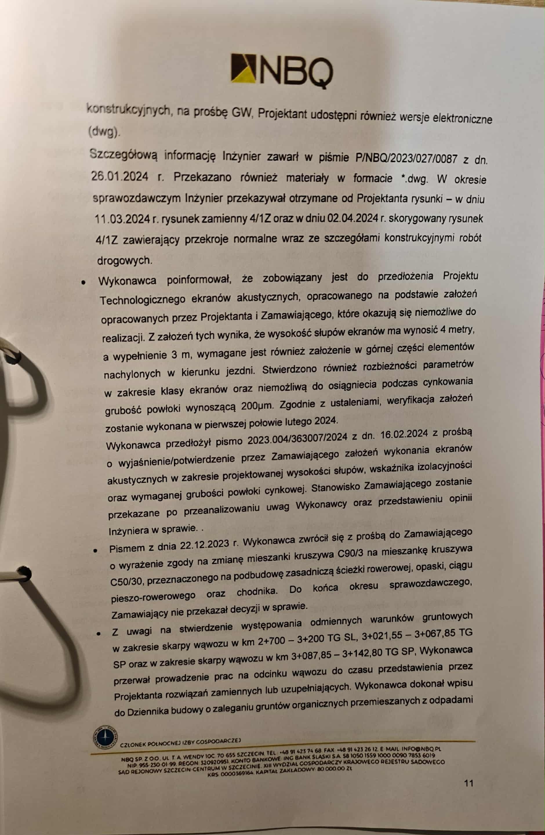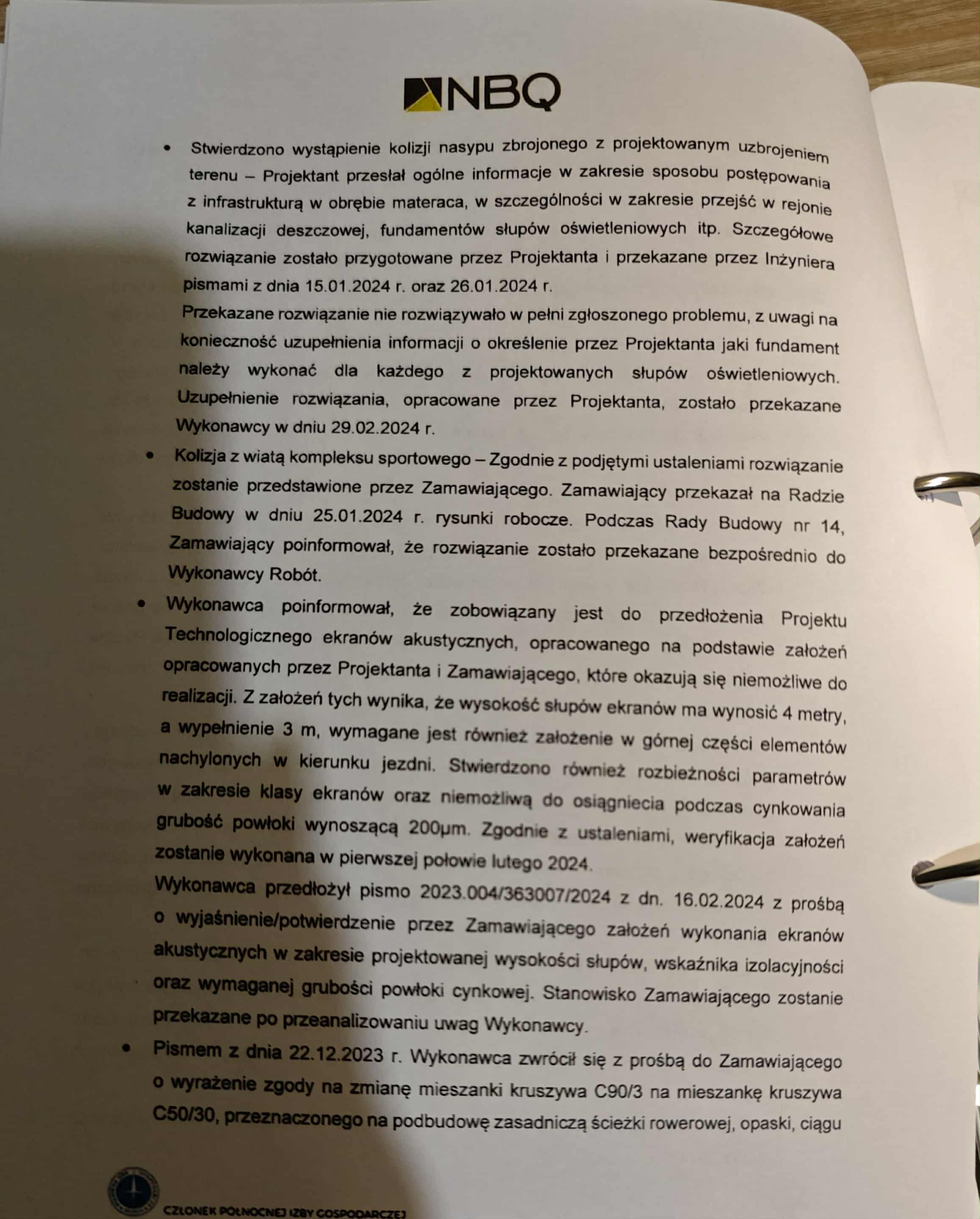 Firma NBQ, pełniąca funkcję inżyniera kontraktu, w swoich raportach nie zostawia złudzeń: opóźnienia, błędy projektowe, rozbieżności w dokumentacji, brak współpracy
