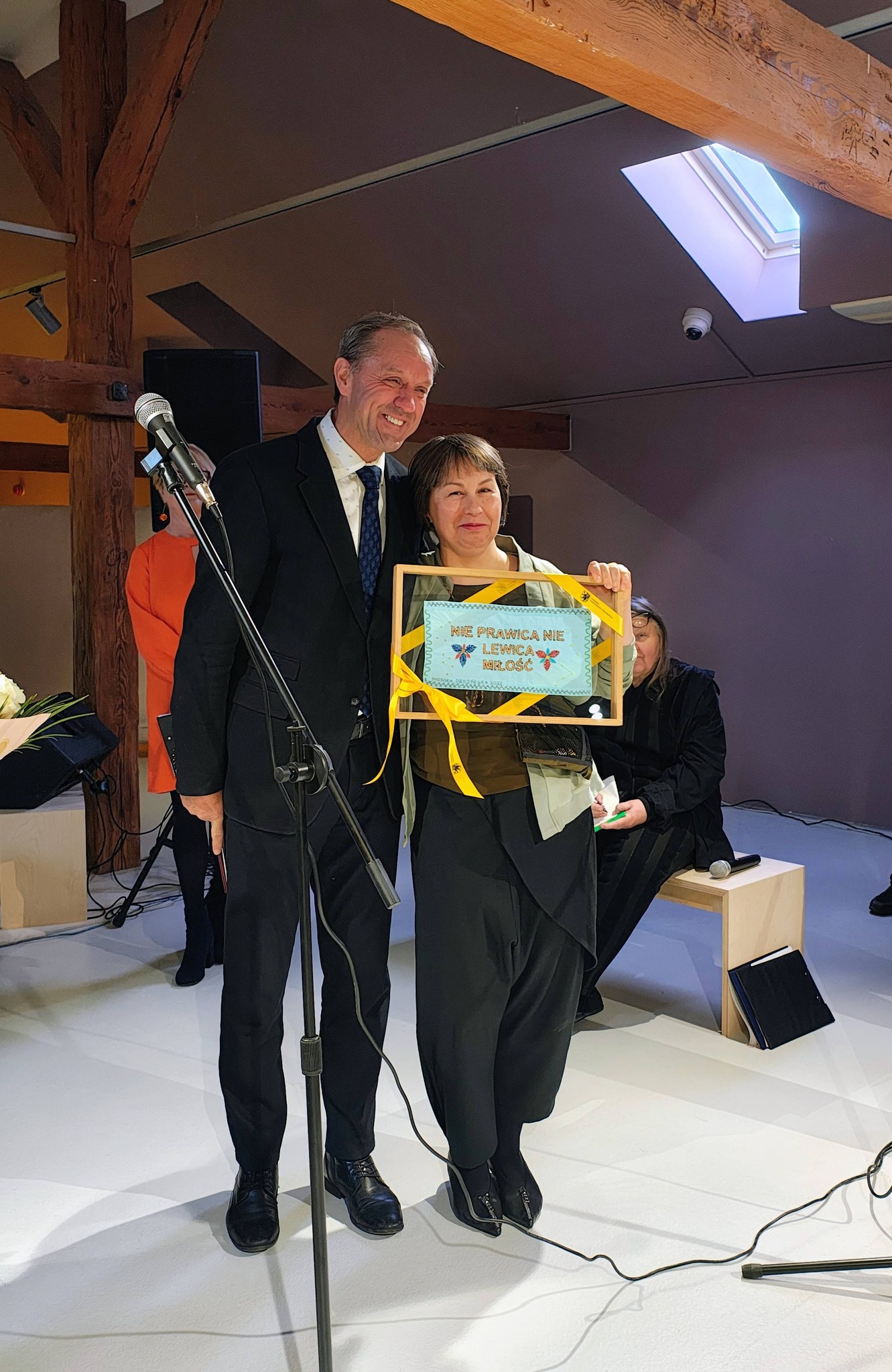 oraz prezydentka Słupska Krystyna Danilecka-Wojewódzka. Były przemówienia – wyważone, momentami osobiste – podkreślające rolę galerii jako miejsca spotkań, eksperymentu i dialogu. Były też gesty bardziej symboliczne: tort, prezenty, uśmiechy, które na chwilę zawiesiły instytucjonalny ton.