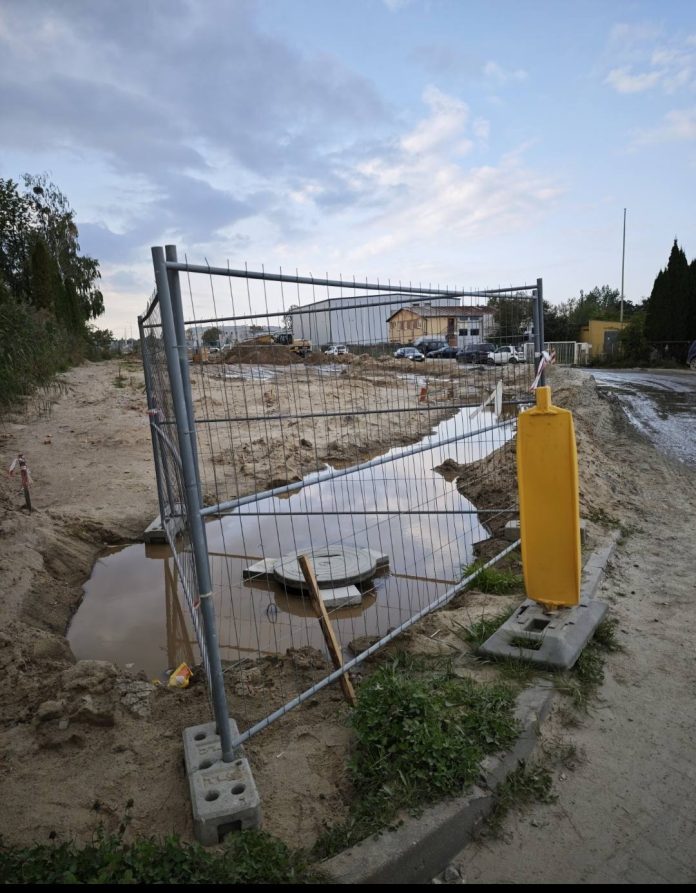 – „Na ul. Słonecznej pompy pracują, a mimo to woda płynie jak rzeczka” – relacjonuje radna Renata Stec, dokumentująca budowę niemal jak korespondentka wojenna.