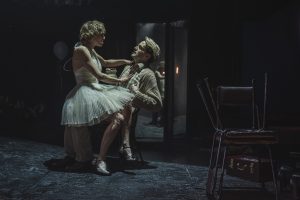 Jednym z najmocniejszych momentów przedstawienia pozostaje scena gwałtu. Zagrana przez Jakuba Mielewczyka z dużą precyzją, buduje narastające napięcie i prowadzi widza