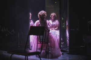 Utrata rodzinnego majątku nie jest w tym przedstawieniu ledwie fabularnym pretekstem, lecz fundamentem psychologii postaci. Blanche nie traci tylko domu. Traci cały system znaczeń, w którym umiała siebie umiejscowić. Traci klasowy kostium, który dawał jej poczucie odrębności, może nawet wyższości, ale zarazem porządkował świat. Po tej stracie nie potrafi już odnaleźć się w rzeczywistości, która nie oferuje ani piękna, ani dystynkcji, ani bezpieczeństwa. W tym sensie dramat Blanche jest także dramatem upadku społecznego, który boli podwójnie: materialnie i symbolicznie.