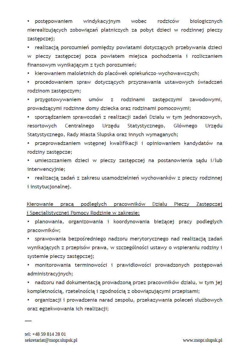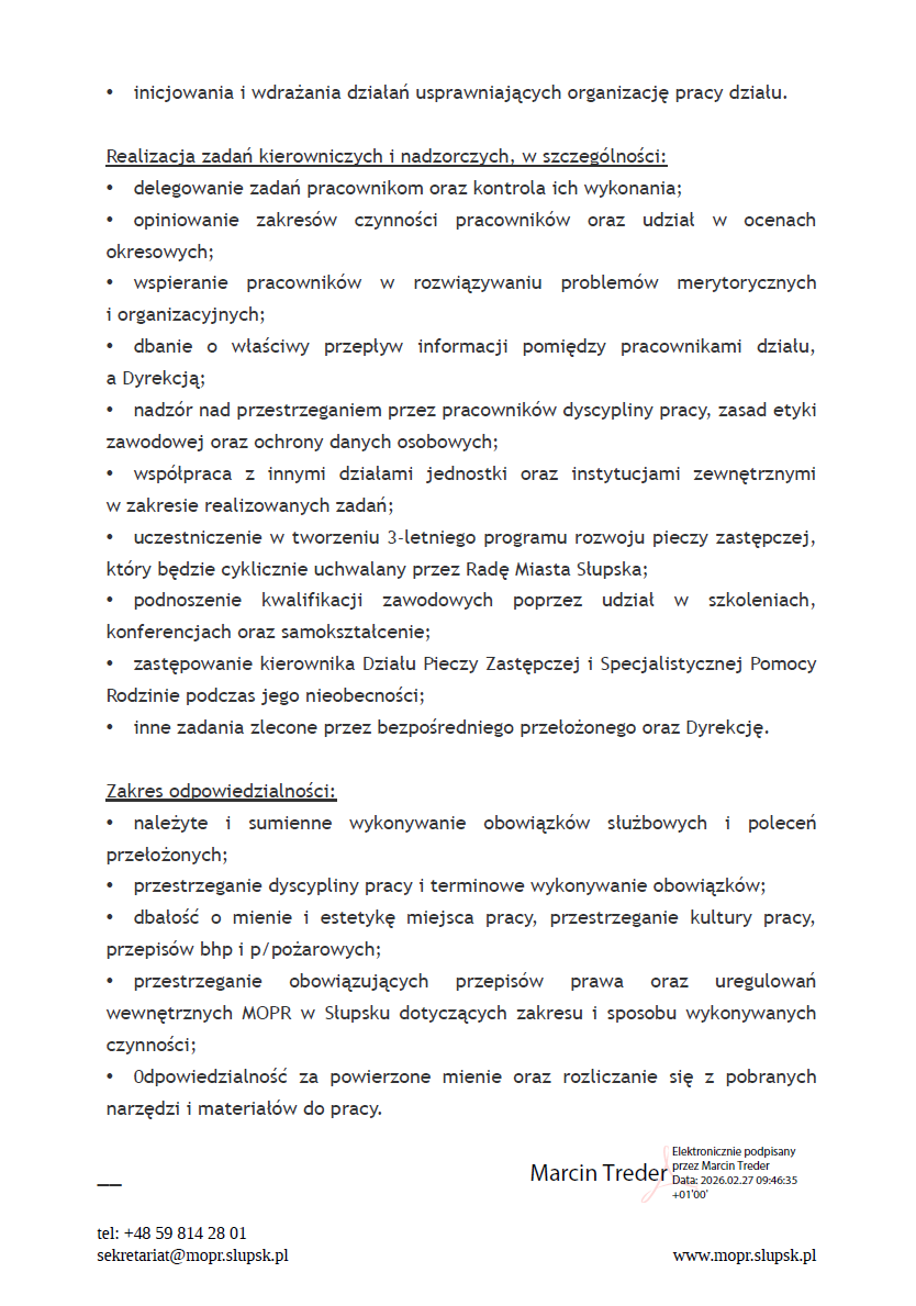i Specjalistycznej Pomocy Rodzinie w MOPR w Słupsku. To stanowisko nadzorcze.