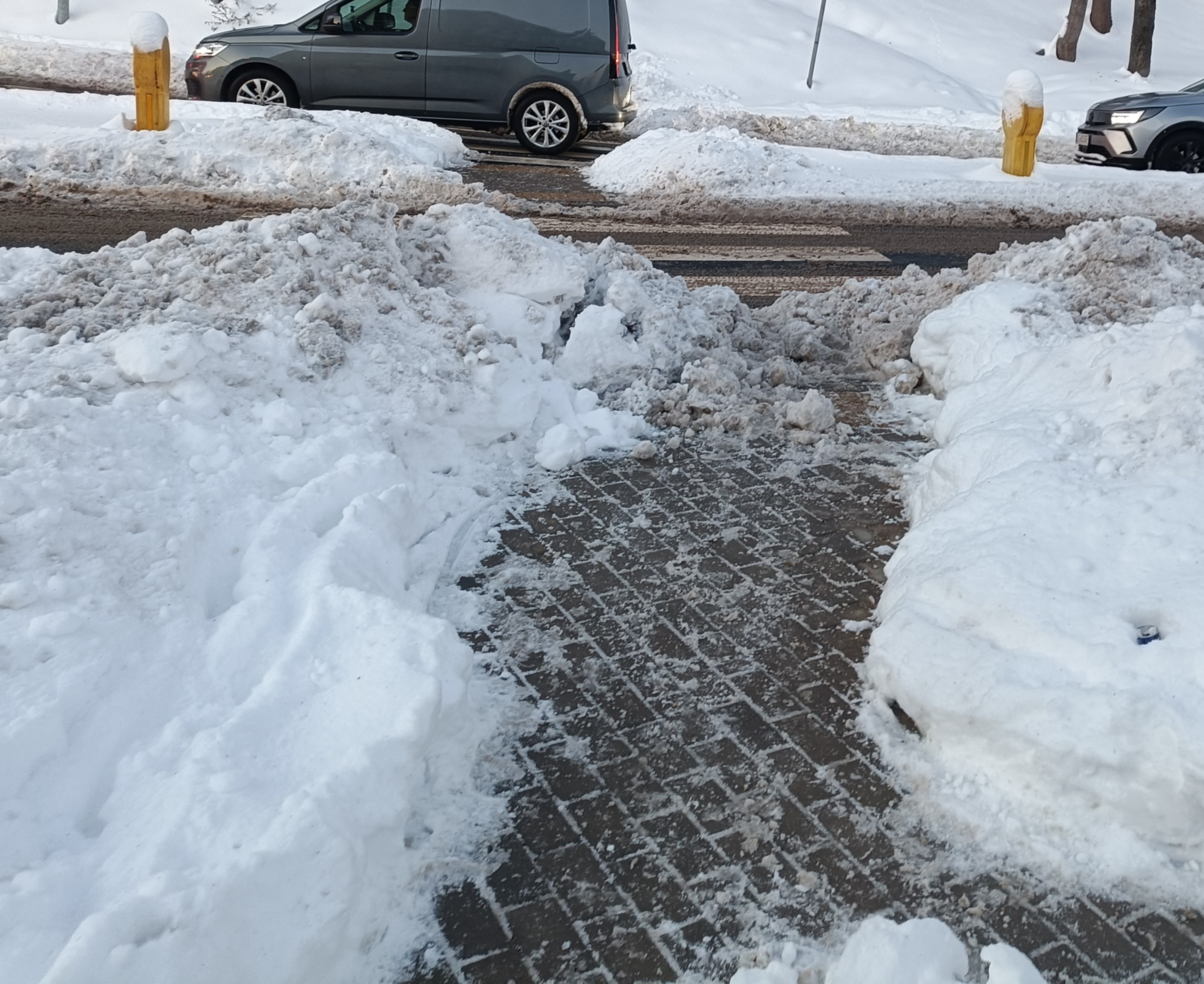 tak by nie blokowały przejścia ani widoczności. W praktyce bywa odwrotnie: śnieg spycha się na krawędź, a pieszy zostaje z wąskim tunelem.