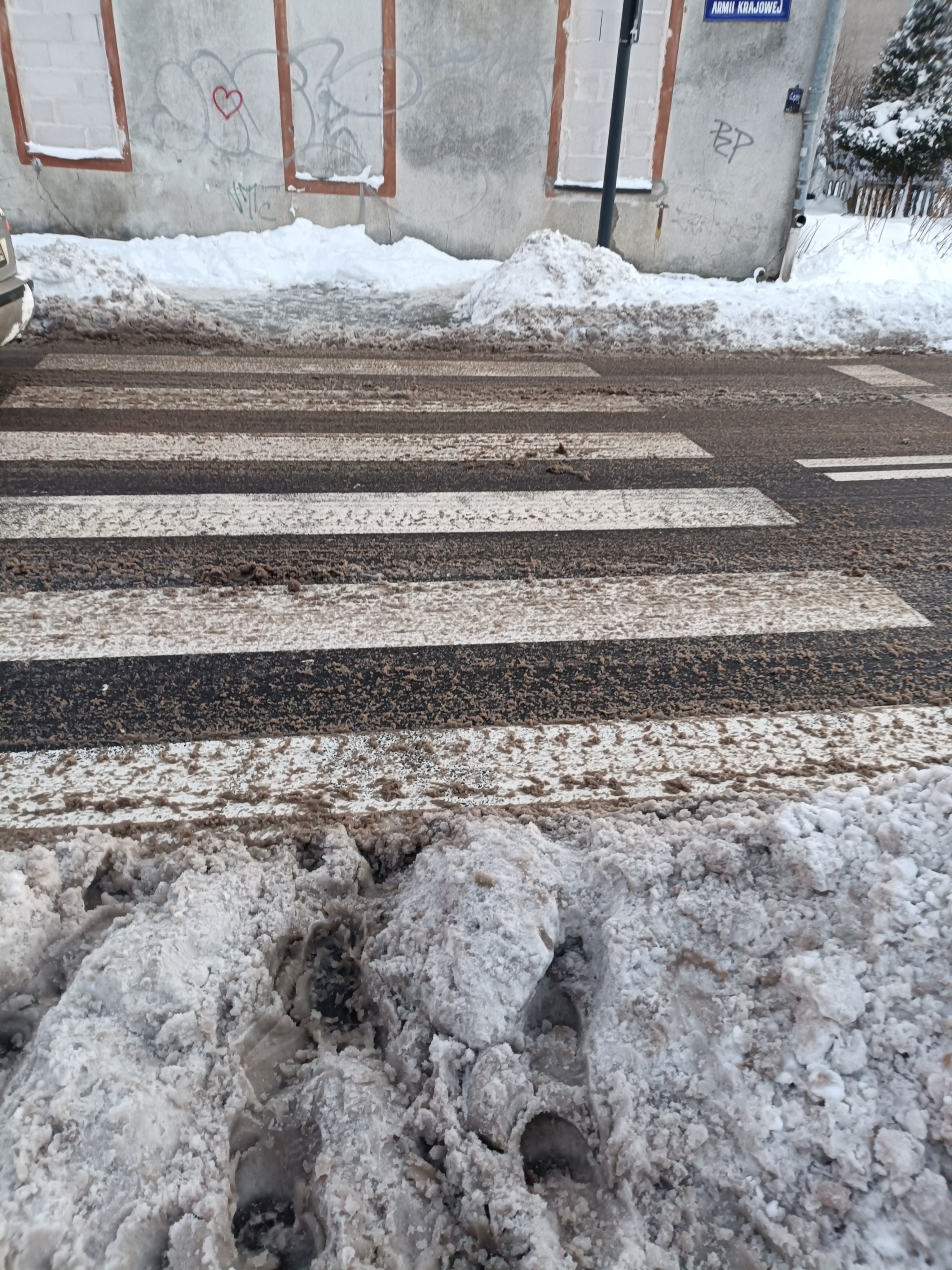 Nie w postaci zakazu czy znaku. W postaci nieodśnieżonego chodnika, lodu pod nogami, śliskiego przesmyku między zaspami. Jakby pieszy był intruzem, kimś tymczasowym,