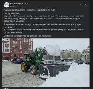 Na profilu spółki w mediach społecznościowych opublikowano bowiem komunikat, z którego wynika, że mieszkańcy mogą „łatwo i bezpłatnie” pozbyć się śniegu, dostarczając